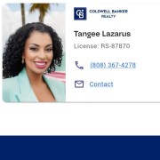 This is Hawaii’s Tangee Lazarus, REALTOR(c). My license is (RS 87870)